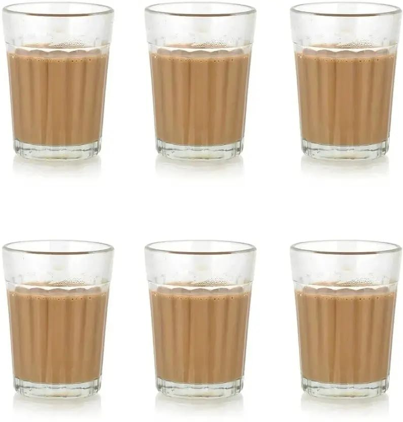 Classic Cutting Chai Glass Set, Transparent Heat-Resistant Glass, Traditional Indian Style Tea Cups, 6 Pieces