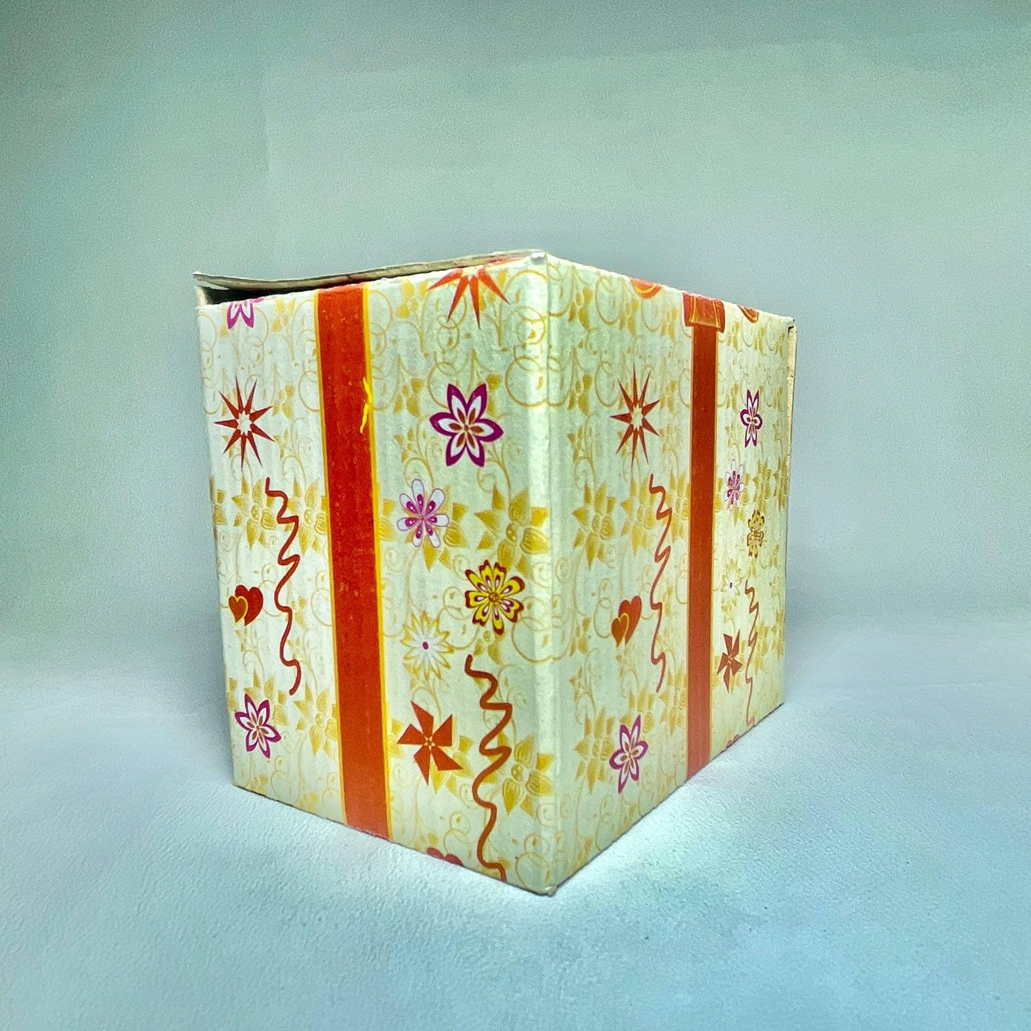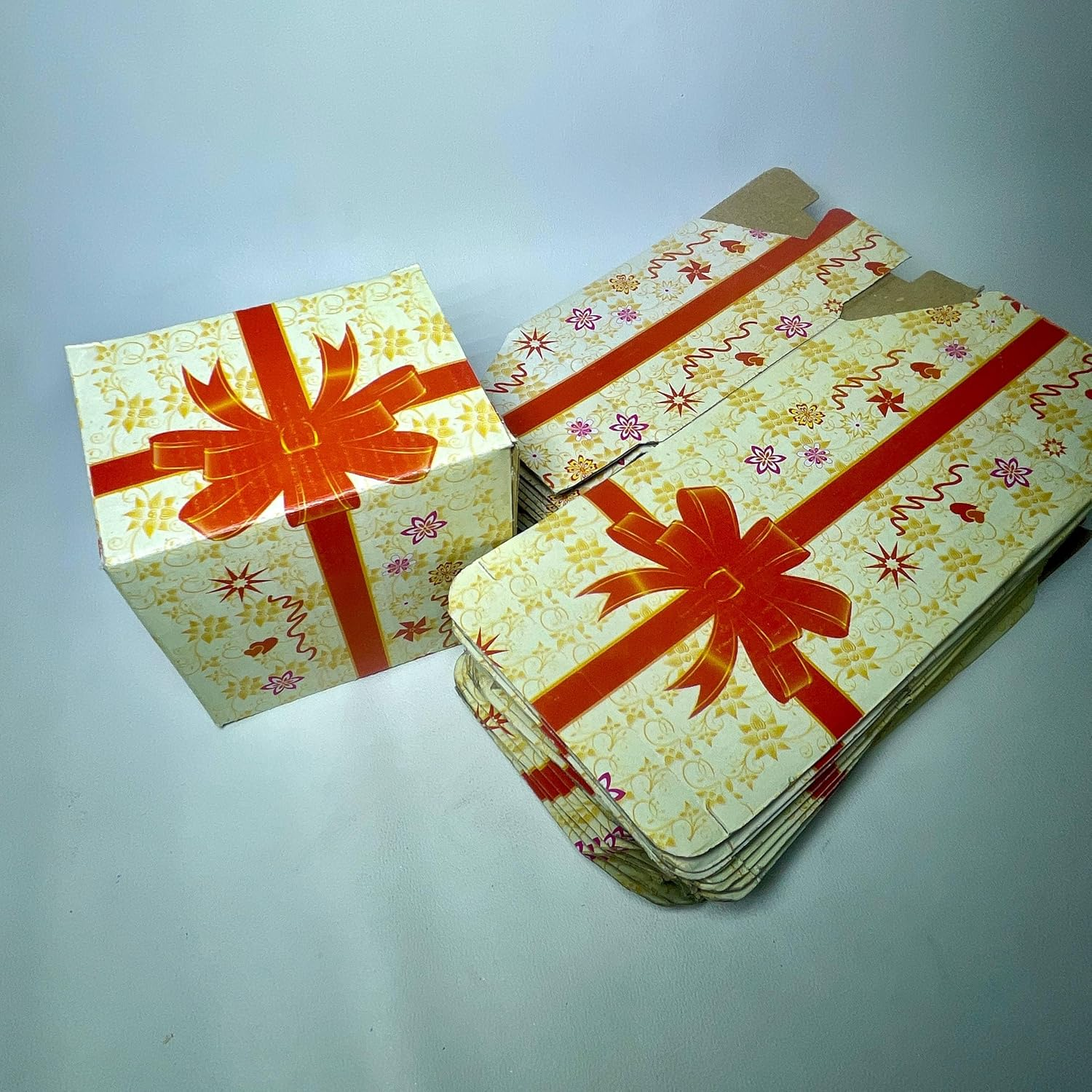 Add a festive touch to your gift-giving with this beautifully designed decorative carton gift box. Featuring an eye-catching red ribbon design adorned with vibrant floral patterns and colourful star motifs, this box transforms any present into a special surprise. The cheerful cream background with golden and multicoloured decorative elements creates an elegant presentation that’s perfect for birthdays, festivals, return gifts, corporate events, and other special occasions. Made from sturdy cardboard material, these boxes arrive flat-packed for convenient storage and can be assembled in seconds when needed. Measuring 13 cm in width and 11 cm in height, this versatile box accommodates a variety of gift items whilst maintaining a compact, manageable size. The pack includes 50 boxes, making it an economical choice for businesses, event planners, or anyone who enjoys presenting gifts with style. Whether you’re wrapping jewellery, accessories, sweets, or small keepsakes, these decorative boxes eliminate the need for additional wrapping paper whilst providing a polished, professional appearance that recipients will appreciate.