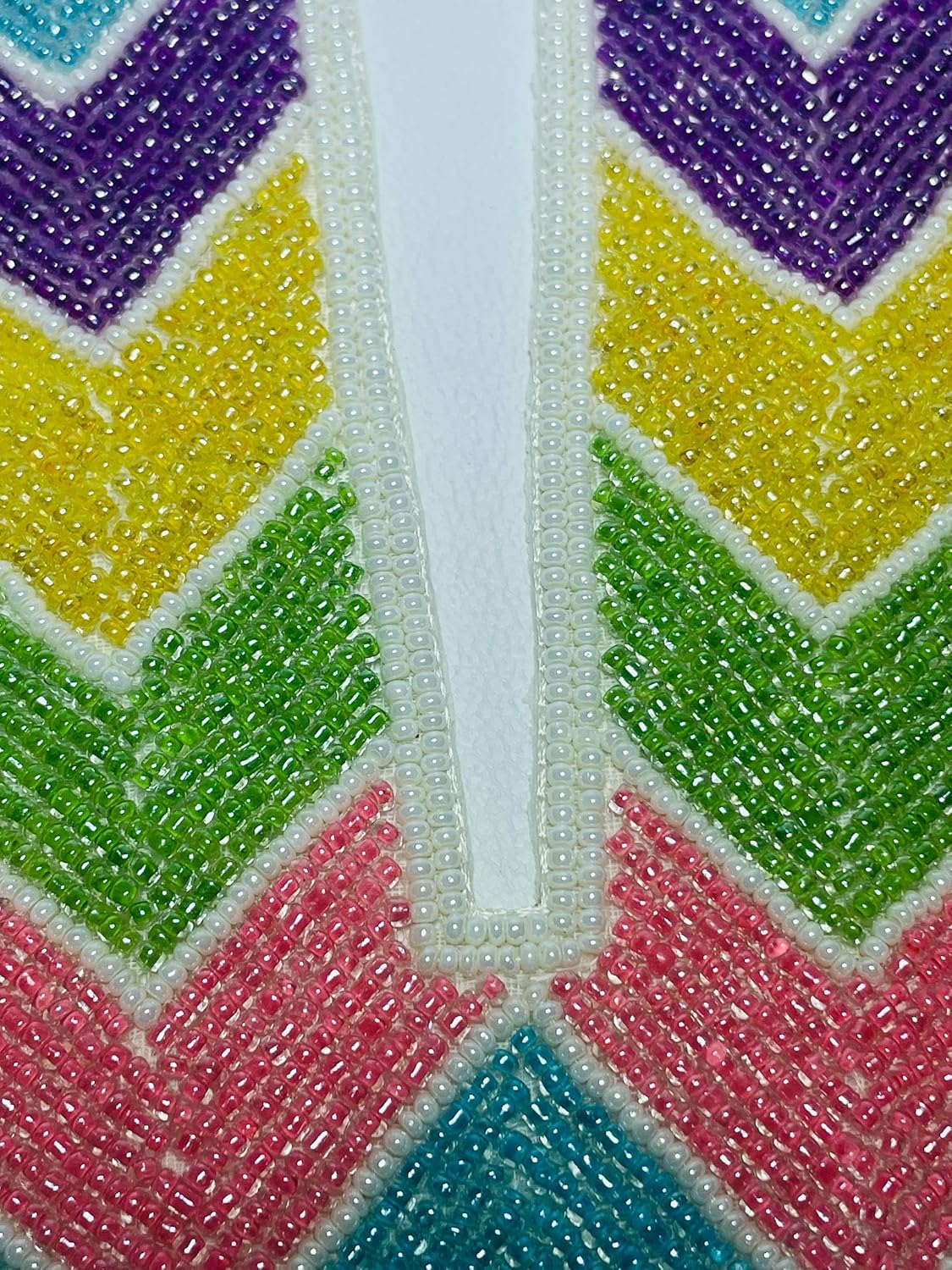 - HANDCRAFTED DESIGN: Exquisite beaded neck patch featuring intricate chevron pattern with vibrant pink, blue, purple, green, and yellow beads creating a stunning dimensional effect