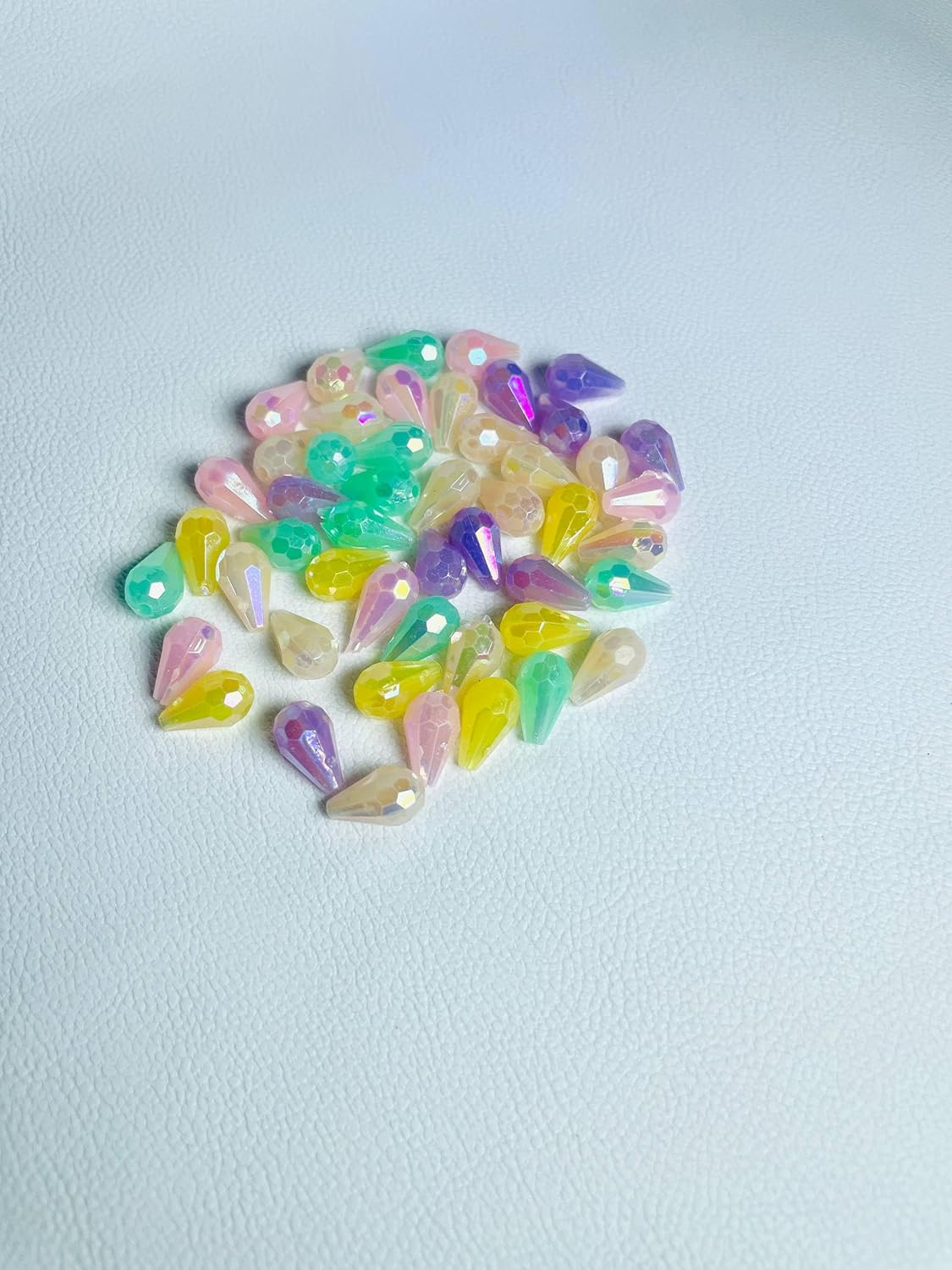 Iridescent Teardrop Beads, Faceted Acrylic Craft Beads in Pastel Yellow, Pink, Purple, Teal for Jewelry Making, DIY Projects, Decorative Embellishments