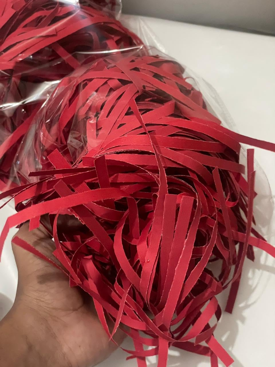 - PREMIUM QUALITY: Finely shredded paper strips in vibrant red colour, perfect for gift packaging and decorative filling, weighs 50 grams