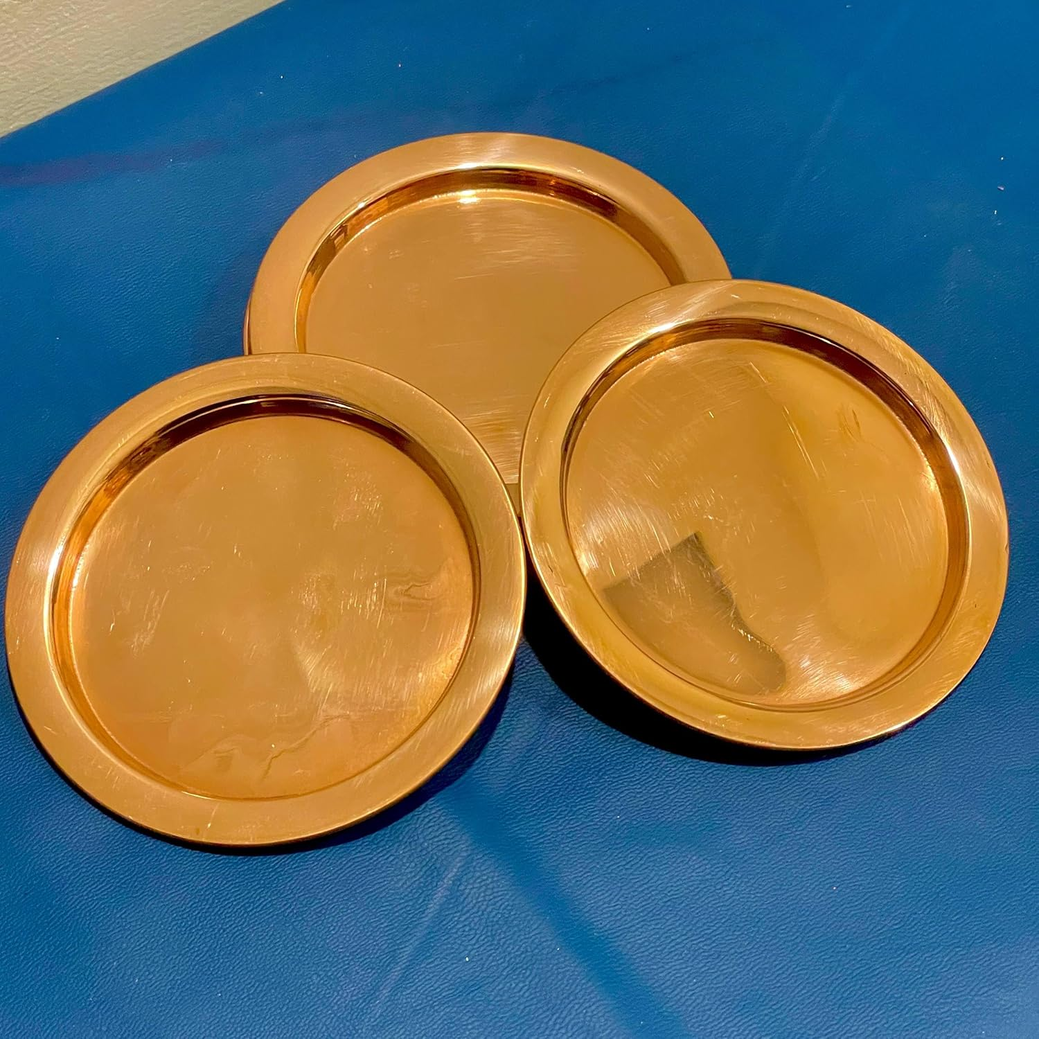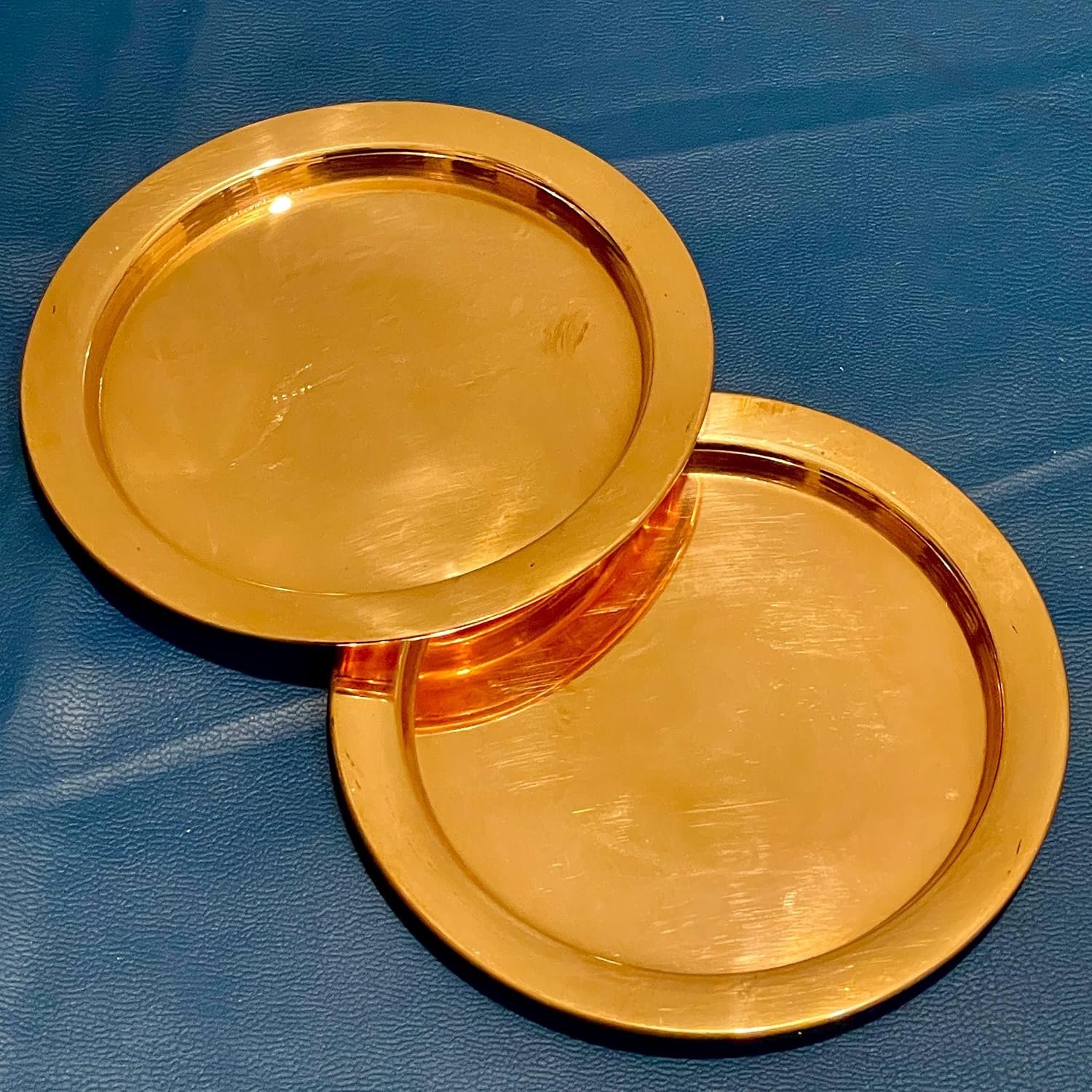 Elevate your dining experience with this exquisite set of six traditional handcrafted brass coasters. Each piece showcases a stunning golden polished finish that adds a touch of sophistication to any table setting. These round coasters are meticulously crafted to protect your precious furniture surfaces from unsightly water rings and heat marks. The classic design features a smooth, flat surface that provides stable support for your beverages, from steaming hot tea to chilled drinks. Perfect for both everyday use and special occasions, these coasters seamlessly blend functionality with aesthetic appeal. Their substantial construction ensures durability while maintaining an elegant appearance. Whether arranged on your coffee table, dining table, or bar counter, these coasters make a striking statement while serving their protective purpose. They also make a thoughtful gift for housewarmings or festive celebrations. The timeless appeal of polished brass ensures these coasters will remain a cherished addition to any home décor for years to come. Hand wash recommended to maintain their lustrous finish.