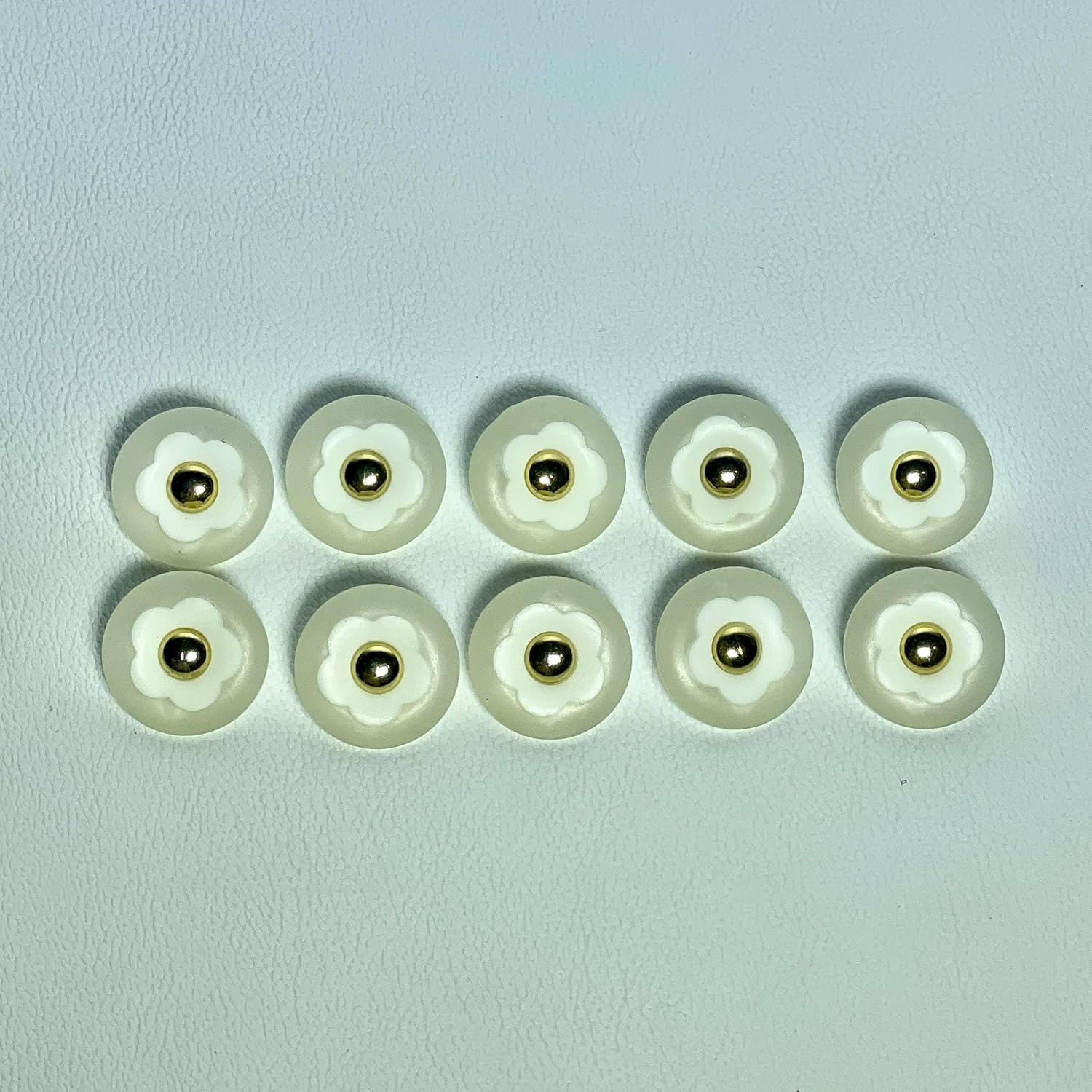 Vintage Daisy Flower Buttons, Frosted White Resin with Gold Center, Floral Design for Crafts and Fashion, 10 Pack